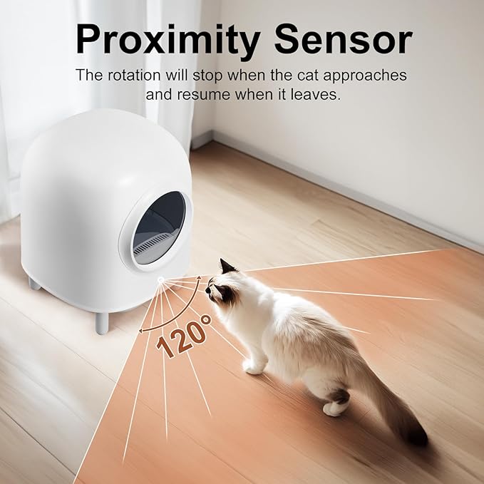 Built-in safety sensors detect your cat’s presence to prevent operation while occupied—safe for cats of all sizes.